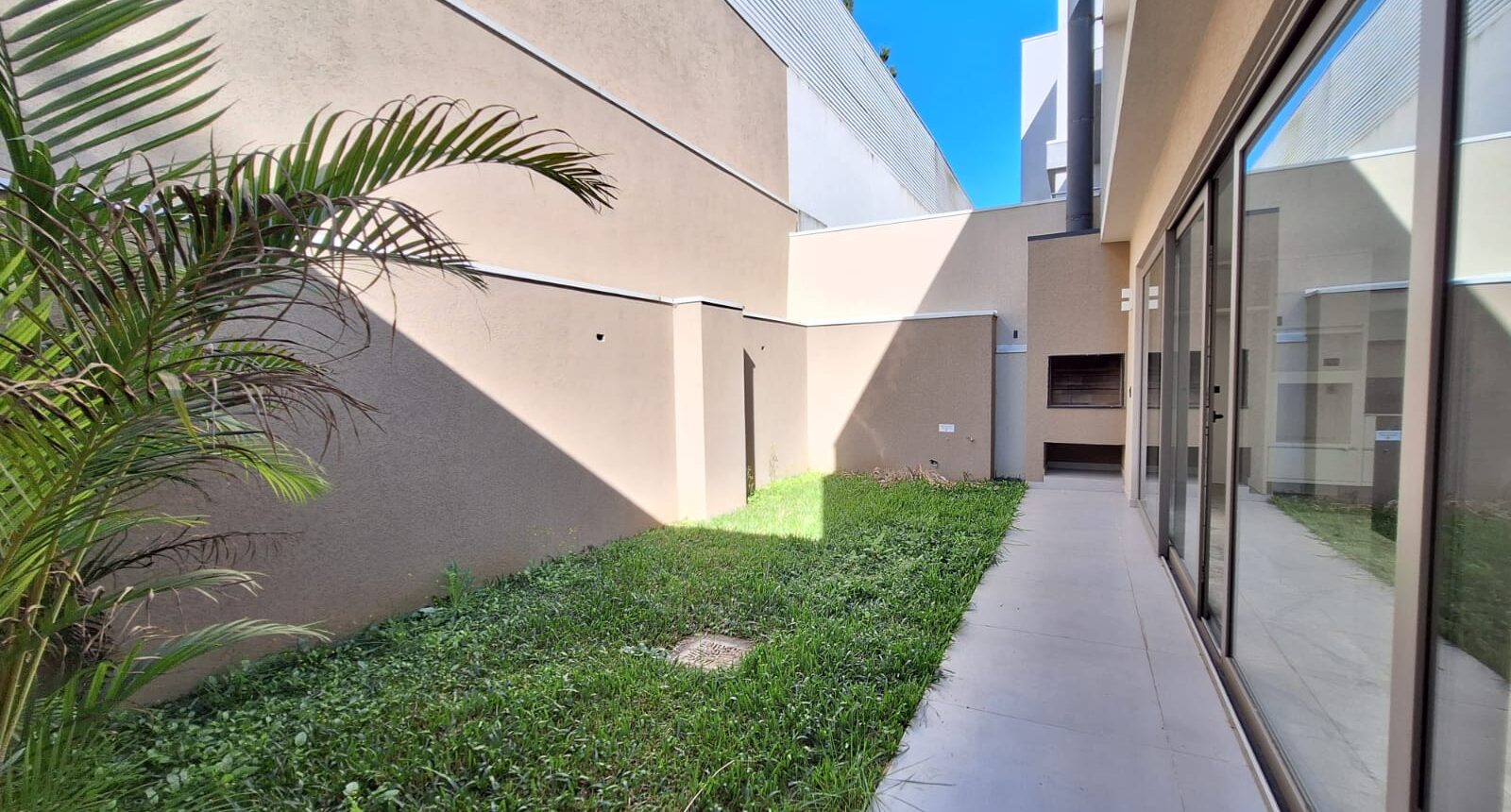Quintal com área verde churrasqueira a carvão