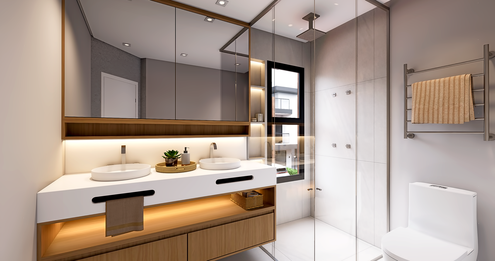 Banheiro da suíte com cuba dupla