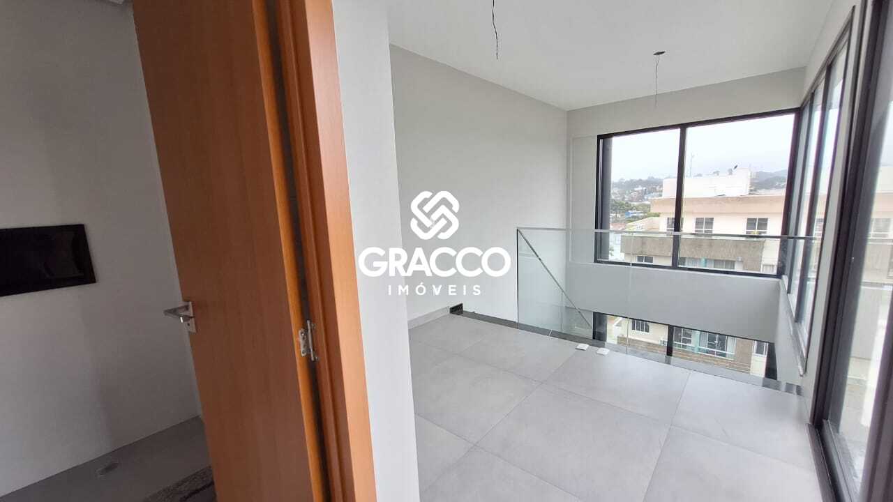 Já no segundo pavimento, fica o estar íntimo, banheiro e destaque para o terraço com churrasqueira e uma vista deslumbrante da cidade de Curitiba.